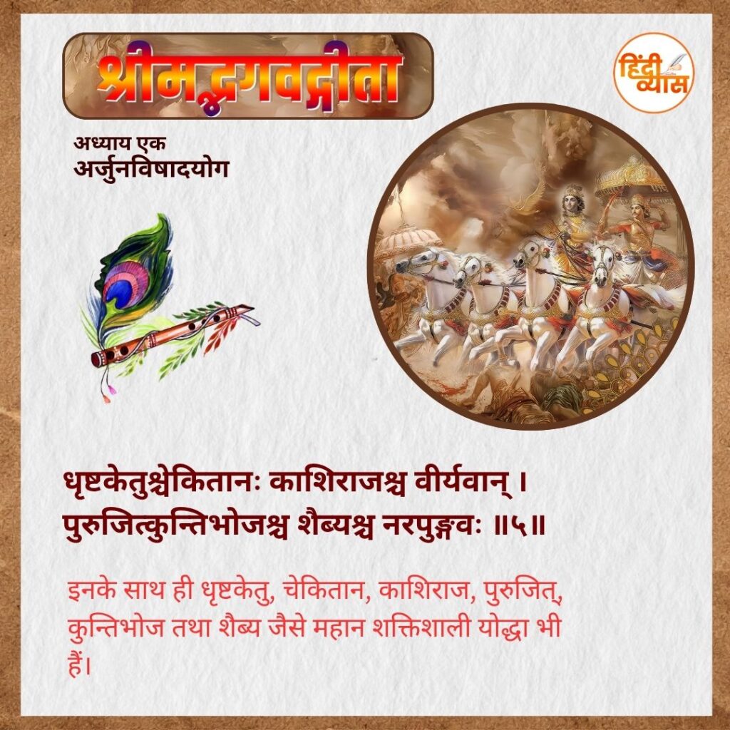 इनके साथ ही धृष्टकेतु, चेकितान, काशिराज, पुरुजित्, कुन्तिभोज तथा शैब्य जैसे महान शक्तिशाली योद्धा भी हैं।