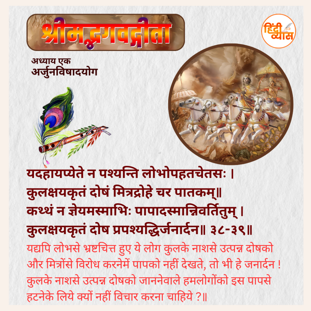 कुलक्षयकृतं दोष प्रपश्यद्धिर्जनार्दन॥ ३८-३९॥