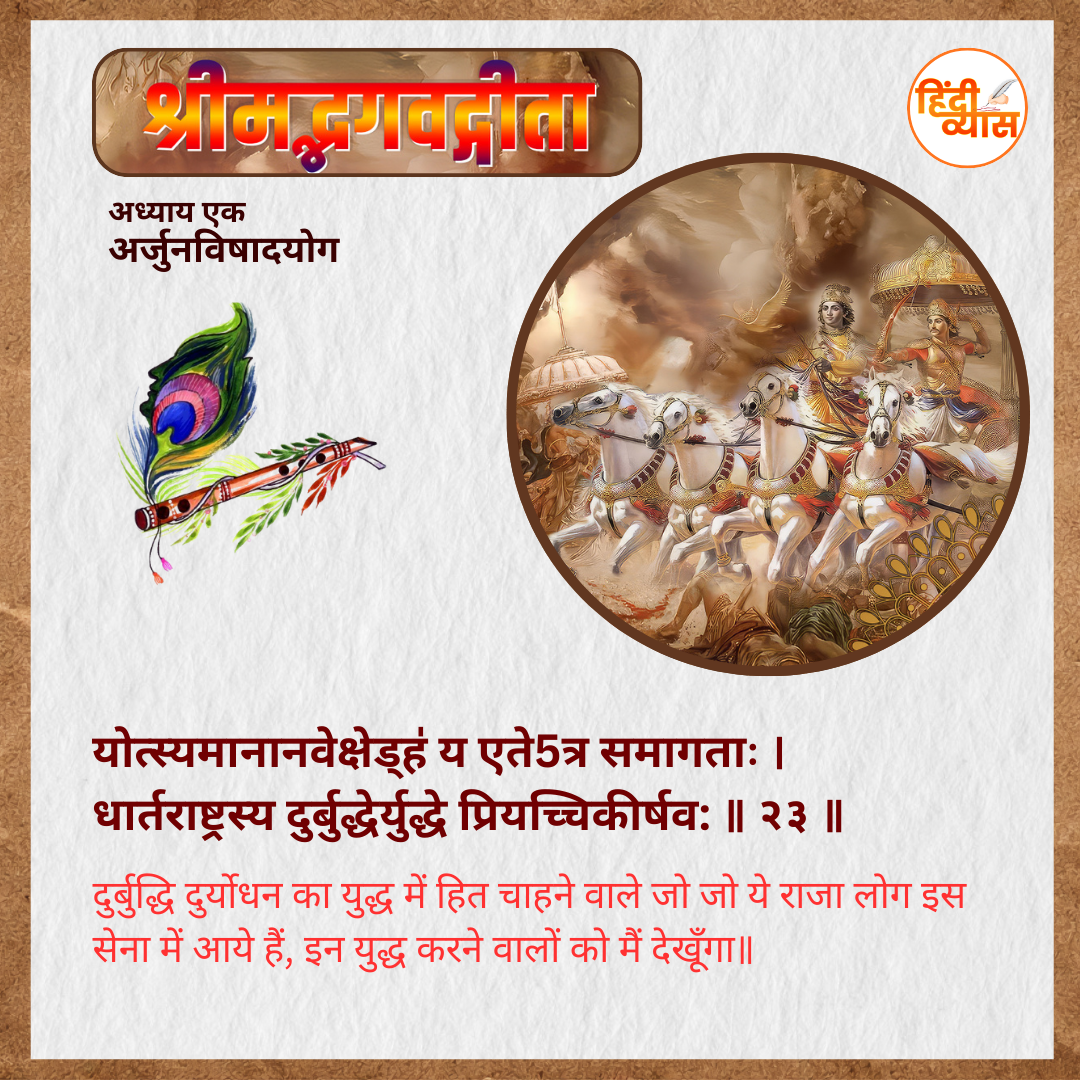 धार्तराष्ट्रस्य दुर्बुद्धेर्युद्धे प्रियच्चिकीर्षव: ॥२३॥