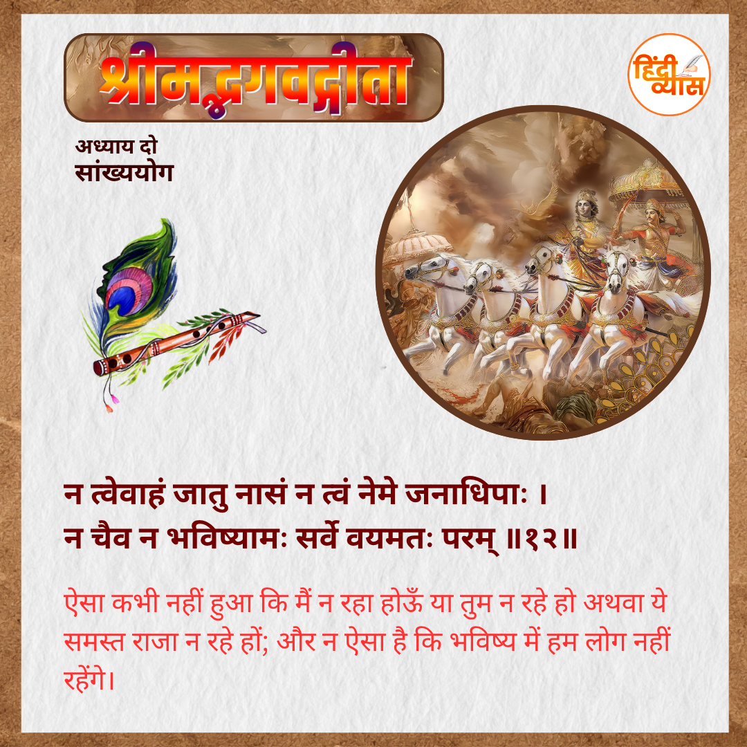 न तो ऐसा ही है कि मैं किसी काल में नहीं था, तू नहीं था अथवा ये राजा लोग नहीं थे और न ऐसा ही है कि इससे आगे हम सब नहीं रहेंगे॥