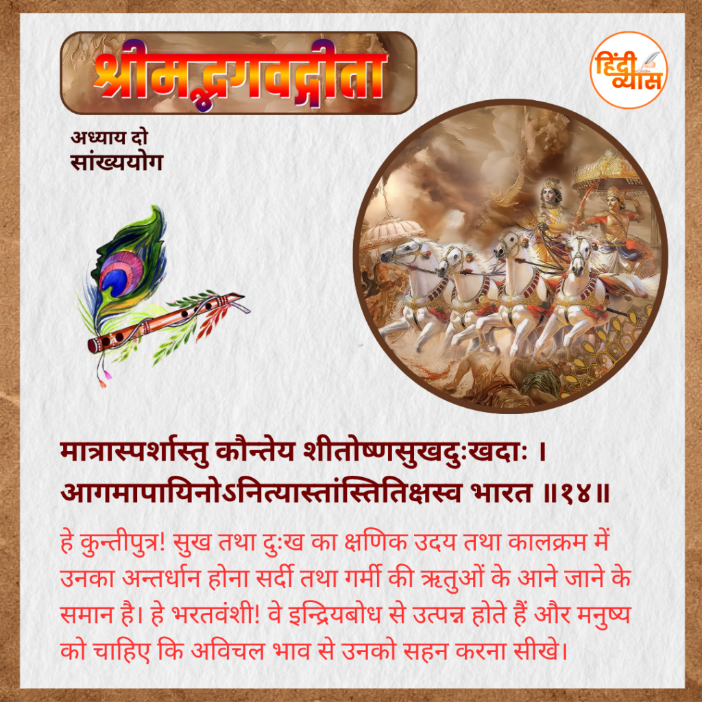 मात्रास्पर्शास्तु कौन्तेय शीतोष्णसुखदुःखदा: । आगमापायिनो>नित्यास्तांस्तितिक्षस्वर भारत॥ १४॥