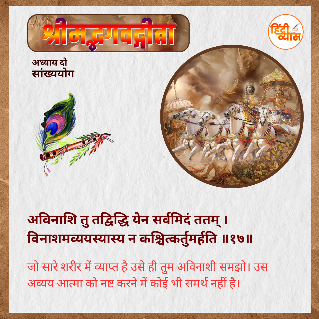 अविनाशि तु तद्विद्धि येन सर्वमिदं ततम्। विनाशमव्ययस्यास्थ न कश्ित्कर्तुमहति ॥ १७॥