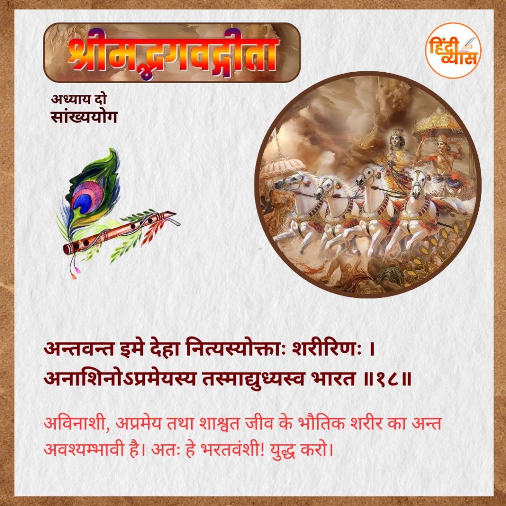 अन्तवन्त इमे देहा नित्यस्योक्ता: शरीरिण: । अनाशिनो5प्रमेयस्य तस्माद्युध्यस्व भारत॥१८॥